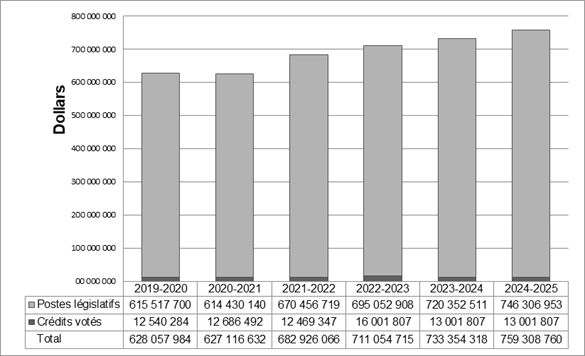 | Dépenses budgétaires 2022‑2023 (comme indiqué dans le Budget principal des dépenses) | Dépenses prévues 2022‑2023 | Dépenses prévues 2023‑2024 | Dépenses prévues 2024‑2025 |